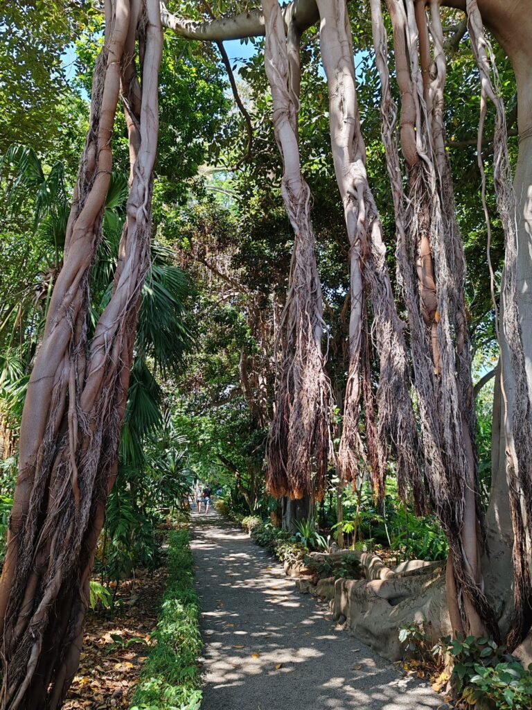 Grădina, a doua cea mai veche dintre grădinile botanice din Spania, după cea din Madrid, are o colecție interesantă de 1.500 de specii tropicale și subtropicale, vizitatorii putând admira aici, printre altele specii spectaculoase și interesante, și câteva exemplare, dintre care unul gigantic, de Ficus macrophylla, cunoscut în mod obișnuit sub numele de smochinul Moreton Bay, originar din estul Australiei. Acesta atrage prin aspectul său bizar, dat de felul în care are loc germinarea semințelor, de obicei din coronamentul unui arbore gazdă.