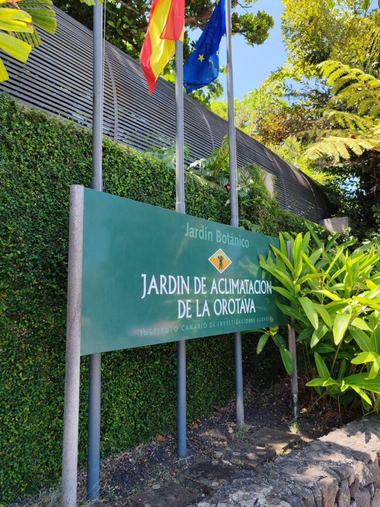 Denumirea oficială este Grădina de Aclimatizare Orotava (Jardin de Aclimatacion de la Orotava), după orașul vecin Orotova, care cuprindea în trecut și această parte din Puerto de la Cruz în care se află grădina botanică, mai exact la intrarea în oraș, pe Carretera del Botanical, de asemenea în zona La Paz.