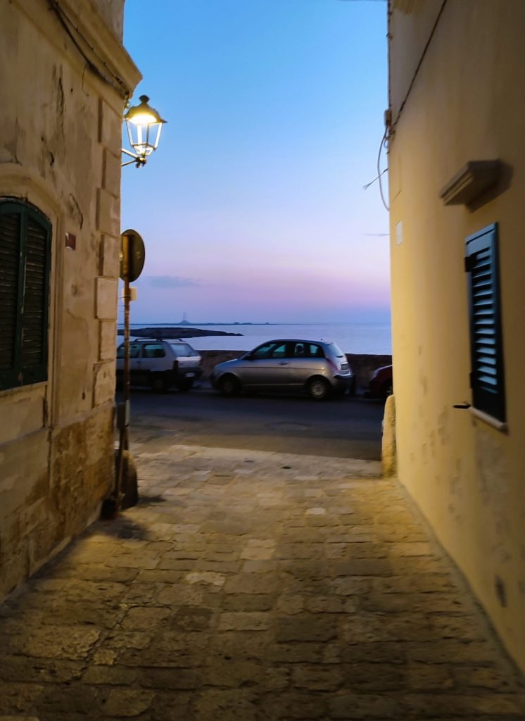 Este una dintre acele „străzi-revelație” pe care le descoperim mai mult din întâmplare în orașele vechi de coastă, italiene sau grecești. La capătul acestor străzi se arată adesea surprinzător marea și apusul fermecător, cu soarele scufundându-se agale în adâncul albastru.