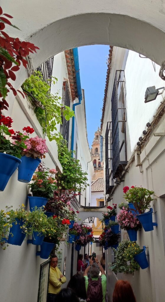 Deși are multe străzi, străduțe și alei încântătoare care invită la plimbări în voie, cea mai populară și iubită stradă turistică din Cordoba (detalii, aici) este Calleja de las Flores. Aceasta este o alee îngustă decorată cu flori, situată în inima cartierului evreiesc. Pe sub arcade, pe zidurile și sub balcoanele caselor albe, turiștii pot admira aranjamentele florale pe toată lungimea străzii care se termină într-o mică piață la fel de înflorată.