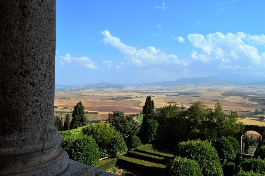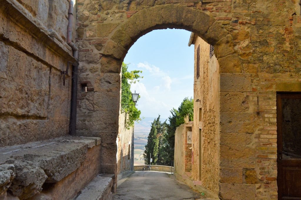 În sudul Toscanei, la 45 km de Siena, așezată pe dealurile unduitoare ale fermecătoarei și celebrei Val d’Orcia, se află Pienza, probabil cea mai atrăgătoare și romantică așezare care îți iese în cale străbătând această minunată regiune a Italiei. Înconjurat de un decor natural idilic tipic toscan, Pienza este orășelul ce se arată fermecător pe culmea unui deal, după ce, doar cu 5 km în urmă poți admira de pe marginea drumului Cappella della Madonna di Vitaleta (informații aici), micuța biserică singuratică, așezată idilic pe culmea unui deal înverzit înconjurată de chiparoși.
