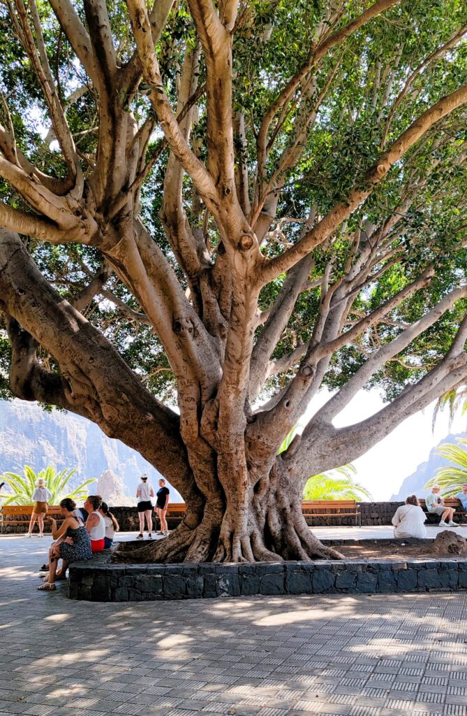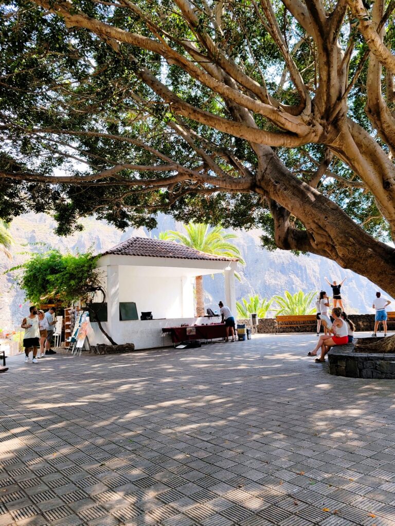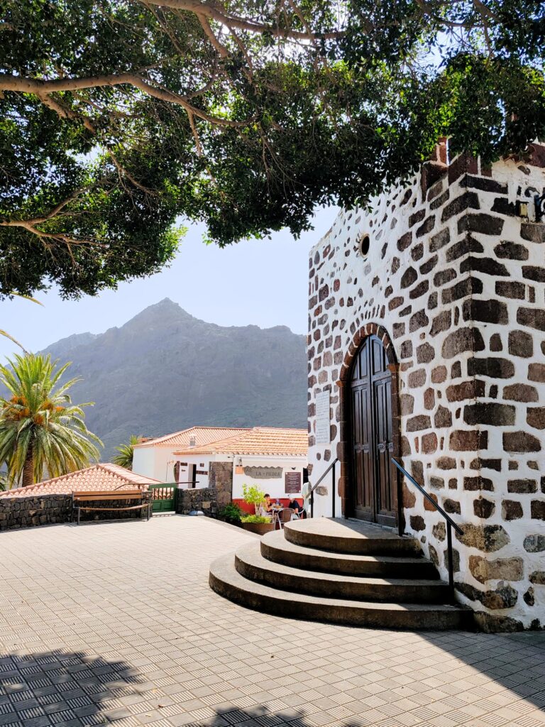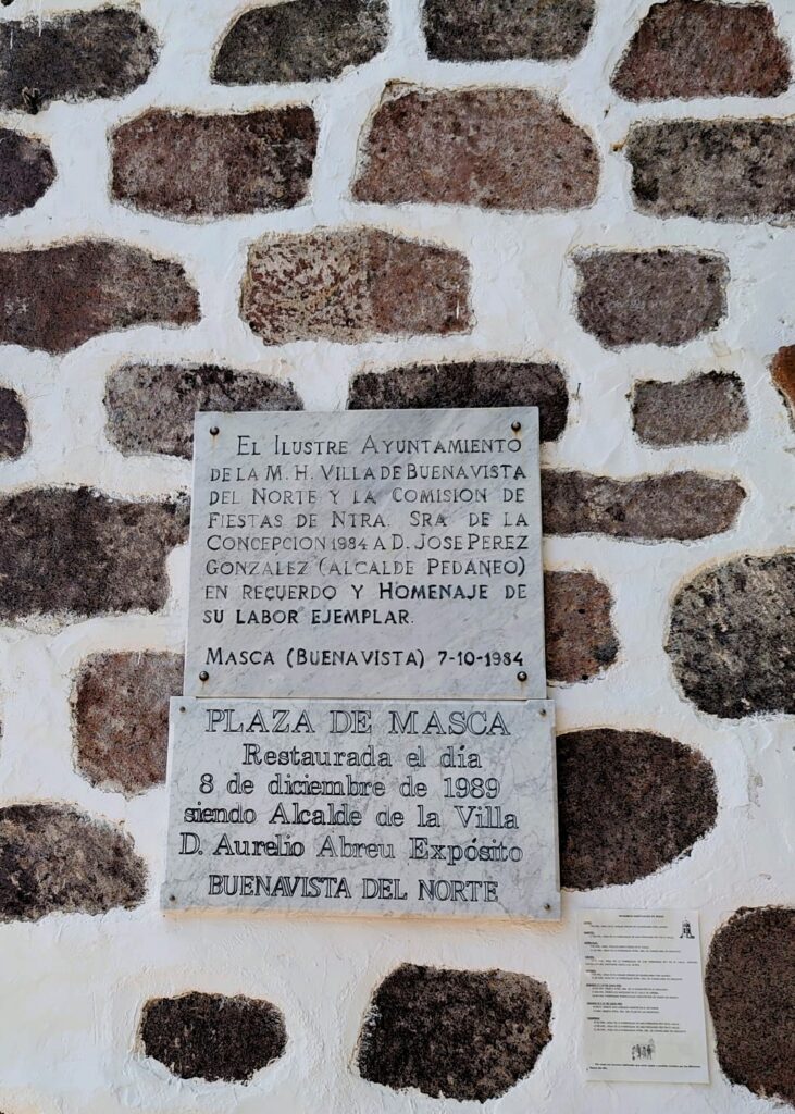 După câțiva metri, vei ajunge îndată în micuța și uimitoarea Plaza de Masca, piața în mijlocul căreia îți poți trage sufletul la umbra impresionantului laur indian, poți admira micuța Capelă a Neprihănitei Zămisliri și, mai presus de toate, te poți delecta cu priveliștile nemaipomenite ce se deschid din micuța piață spre Barranco de Masca, canionul spectaculos al satului, cu vedere spre oceanul îndepărtat.